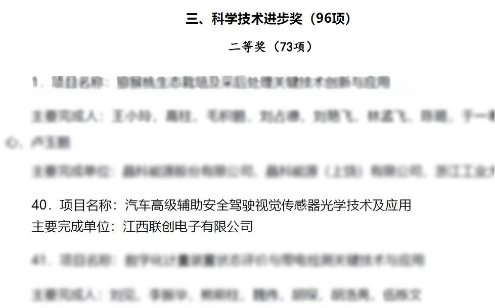 近日,江西省人民政府正式发布了《关于2024年度江西省科学技术奖励的决定》(赣府发〔2025〕13号)。江西联创电子有限公司申报的“汽车高级辅助安全驾驶视觉传感器光学技术及应用”项目荣获江西省科技进步奖二等奖。联创电子已连续三年获得省级科学技术奖励,充分彰显了公司在光学技术领域的卓越实力。